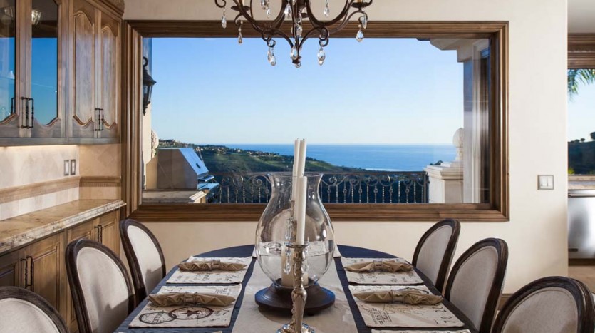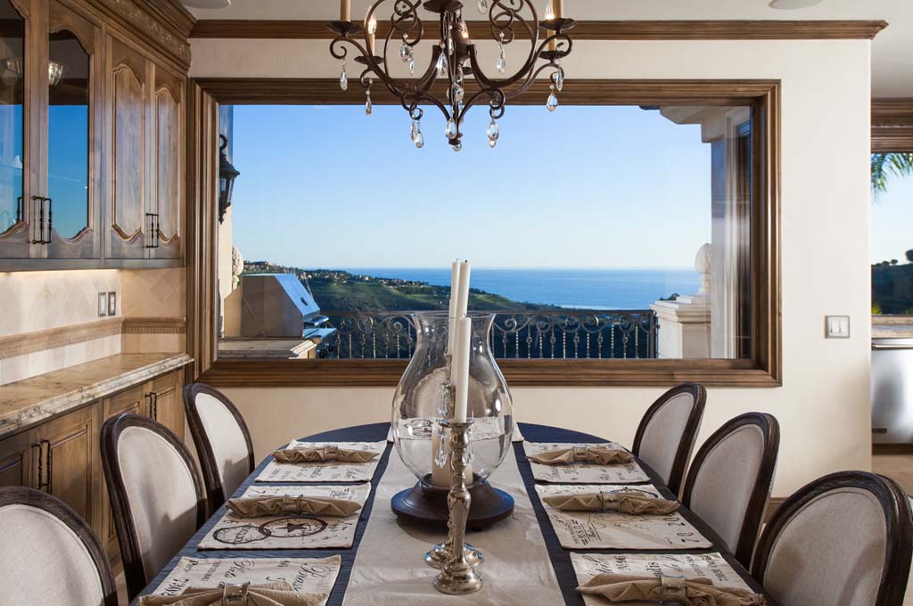 “Tuscany by the sea,” in Pelican Ridge, where the finest Italian craftsmanship meets the sensuous charms of Southern California coastal living. Enjoy unobstructed views of the “California Riviera” from virtually any room. With nearly 3,000 square feet of living space, 3 bedrooms, 3.5 baths & 9 to 12 foot ceilings, you may wirelessly control entry & exit security, air conditioning, spa lighting & water features. The master suite features sweeping views, a custom dressing room, & floor to ceiling closets with a bathroom containing a his & hers vanity, spa tub, shower with jet & rain shower heads with audio & video entertainment & a total home entertainment SONOS audio and video sound system. The billiard room features a wet bar, custom built in’s, high ceilings, & an Brunswick Newbury pool table. The open-plan gourmet kitchen inspired by culinary arts & boasting dual farmhouse decorator sinks contains Viking commercial appliances including dual refrigeration & dishwashers, along with wirelessly controlled dual washers & dryers & Italian leathered granite countertops of hand made Turkish marble. The salt water spa’s brass fountains, gracious outdoor loggia, fire pit make for mature Mediterranean landscaping.The garage showroom has wall to wall custom cabinetry, Sub Zero refrigeration & is finished with natural honed unfilled travertine floors that continue throughout the home. This estate offers everything that is magnificent about Pacific Coast living.