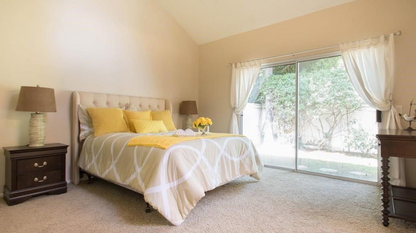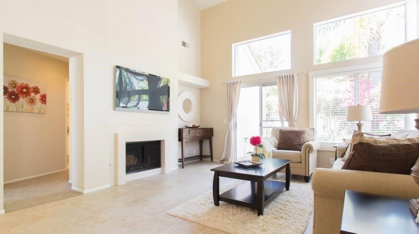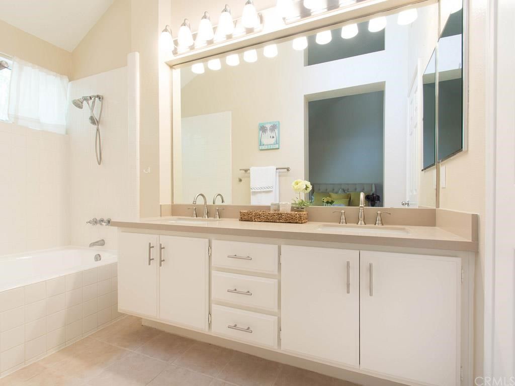 Rare single level 2 BR, 2 BA single family home in great Westpark location. Light, bright and airy with soaring ceilings, lots of windows, fresh paint inside and out, granite counters and white cabinets in the sunny kitchen, new quartz counters in the baths, updated light and plumbing fixtures, re-coated tubs, light tile floors in living, dining, kitchen and baths, brand new carpet in bedrooms. This gorgeous home is freshly updated and ready for a new owner! Pretty flagstone front entry and rear patio, plus private side tile patio and lots of colorful landscaping. Low association dues include 3 pools, tennis courts and pretty parks nearby. Very low mello roos, too! Excellent, quiet location close to great shopping, movies, restaurants and easy access to the 405.
